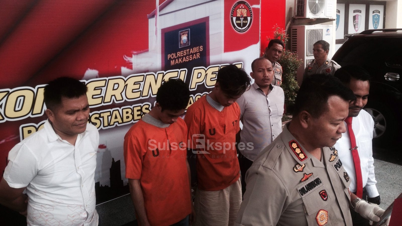 MAKASSAR, SULSELEKSPRES.COM – Ippang (21) dan Candu (20) ditangkap Tim Gabungan Polrestabes Makassar atas dugaan keterlibatannya sebagai penikam terhadap Bharatu (pol) Ari Putra, anggota Brimob Polda Sulsel, Selasa (1/1/2019).
