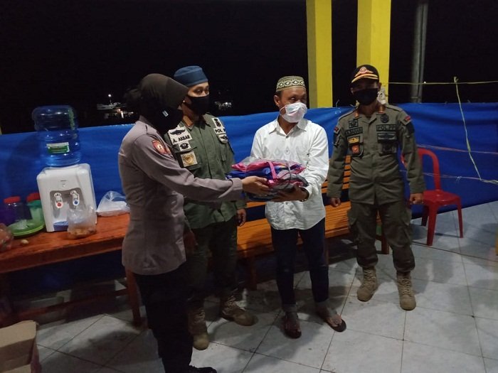 Adapun perlengkapan yang dibagikan meliputi APD, vitamin, sarung tangan, thermometer infrared, masker untuk petugas posko serta jas hujan bagi petugas pengamanan.