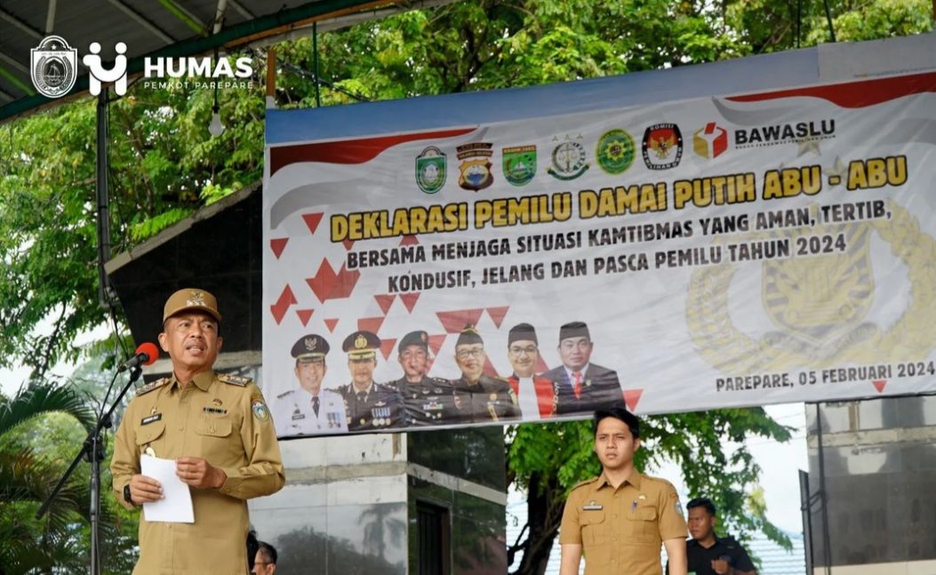 Pelaksanaan Deklarasi Pemilu ini dalam rangka terciptanya Pemilu yang aman, damai bagi pemilih pemula atau generasi Z, yang juga dihadiri para Forkopimda, yang digelar di Lapangan Andi Makkasau Kota Parepare, Senin (5/2/2024).
