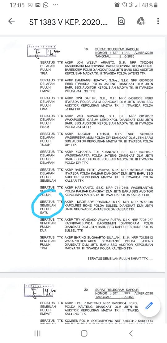 WATAMPONE, SULSELEKPRES.COM – Gerbong mutasi jajaran perwira Polri kembali bergulir. Hal ini berdasarkan surat Telegram Polri ST/1383/V/KEP/2020 tertanggal Jumat (1/5/2020).