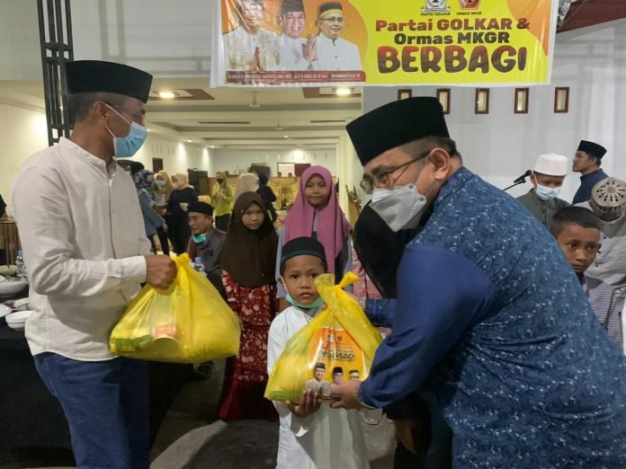 “Buka puasa digelar di beberapa titik bersama anak yatim. Sekitar 5.000 sembako kita bagikan, yang dikemas dalam nuansa Partai Golkar dan MKGR Berbagi,” katanya di sela buka puasa.