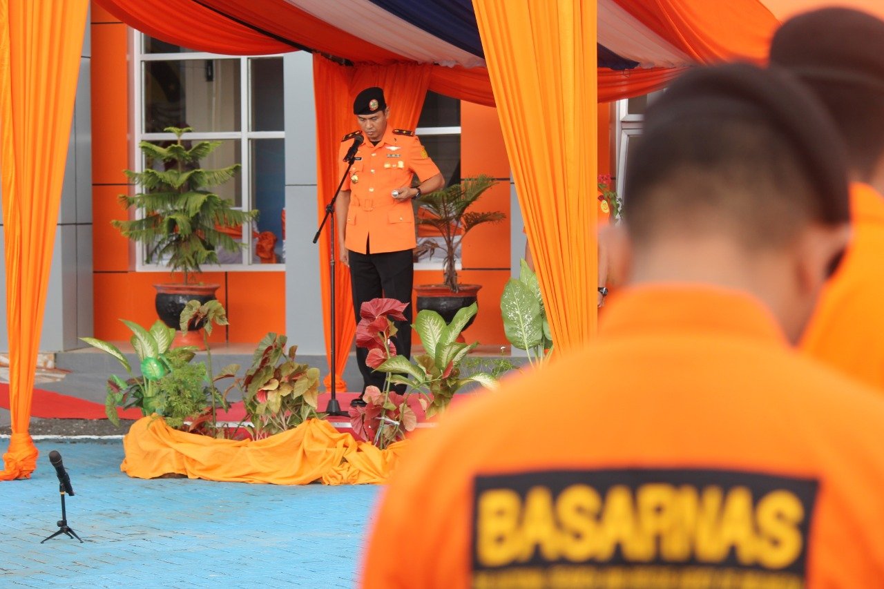 Kepala Kantor Basarnas Makassar, Mustari, membacakan sambutan Kepala Basarnas menyampaikan bahwa Basarnas hingga hari ini masih menjadi tumpuan dan harapan bagi masyarakat dalam penyelenggaraan operasi SAR.