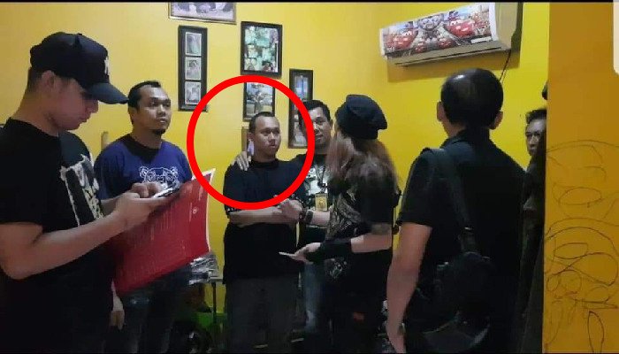 Berdasarkan foto yang diterima,HS ditangkap disebuah rumah. HS yang memakai baju kaos hitam tengah berada dalam ruangan dikelilungi sejumlah petugas. Dia terlihat berdiri sembali melipat tangannya di dada.