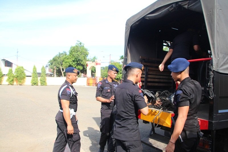 Sebelum berangka Komandan Yon C Pelopor Kompol Nurichsan terlebih dahulu memberikan arahan kepada personelnya.
