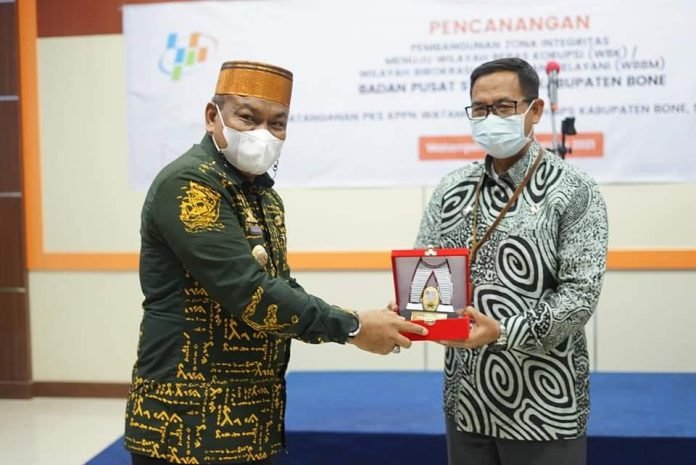 BONE, SULSELEKSPRES.COM – Bupati Bone A. Fahsar M Padjalangi, menghadiri pencanangan Pencanangan Pembangunan Zona Integritas (ZI) BPS Kabupaten Bone menuju Wilayah Bebas dari Korupsi (WBK) dan Wilayah Birokrasi Bersih dan Melayani (WBBM).