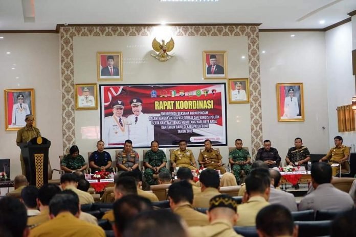 Pertemuan forum tersebut bertajuk Rapat Koordinasi dalam rangka membahas situasi dan kondisi daerah serta menjelang perayaan Hari Raya Natal dan Tahun Baru 2020.