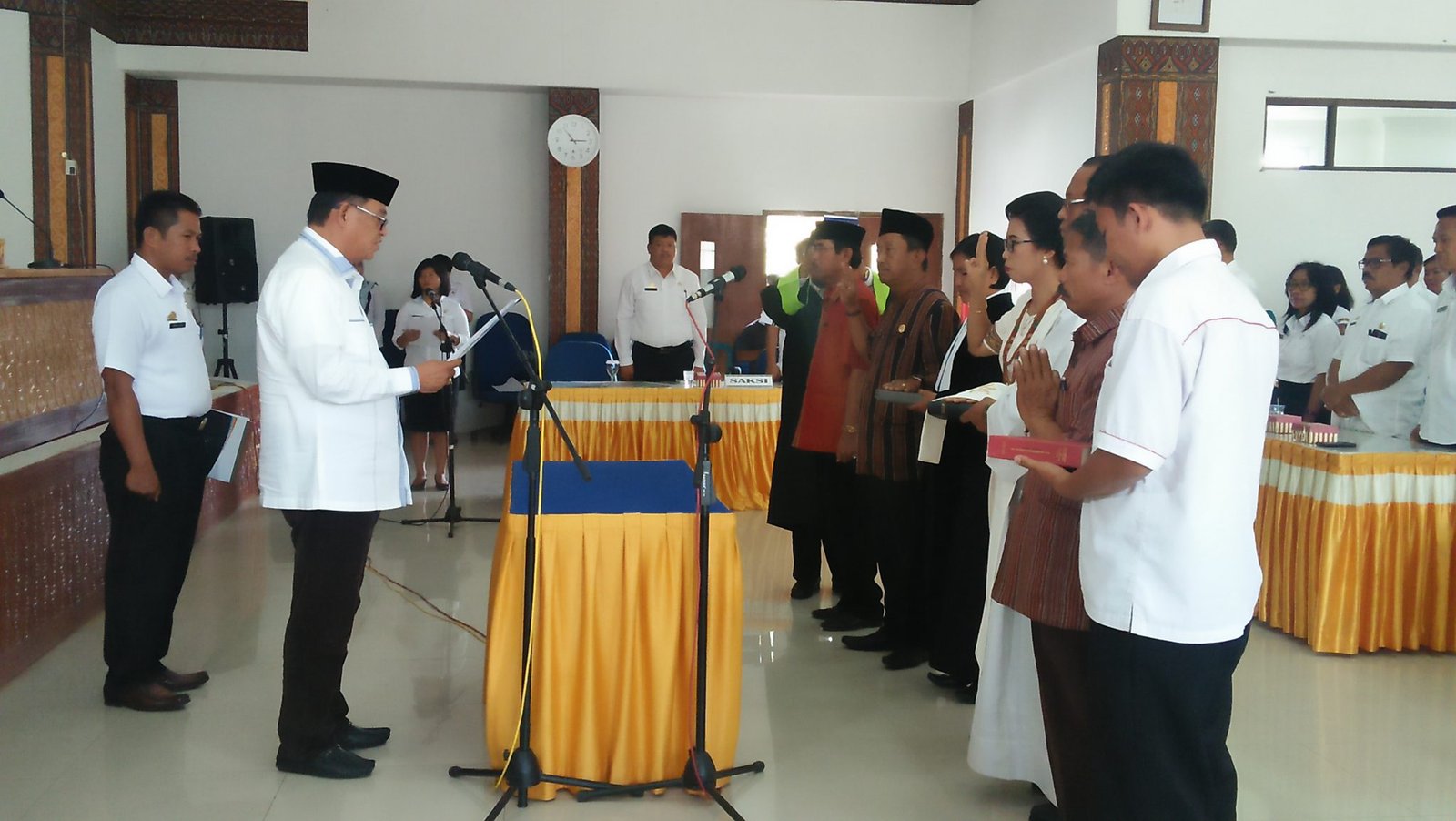 ” Dalam mutasi ini, tidak dapat dipungkiri pasti ada yang senang dan ada yang kecewa, karena tidak semua nama – nama yang dibacakan tadi pasti ada yang tidak sesuai dengan keinginan kalian, bahkan dalam mutasi ini akan ada pihak pihak yang mengaitkan dengan politik pada masa pilkada yang lalu, namun itu terserah persepsi kita masing-masing”. Ujar Nicodemus Biringkanae.
