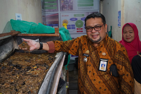 Syahruddin yang didampingi Ketua TP PKK Kelurahan Bonto Makkio, Sekretaris Lurah Bonto Makkio, dan Dewan Lorong memperkenalkan potensi-potensi yang ada di Longwis Lontara khususnya budidaya maggot.