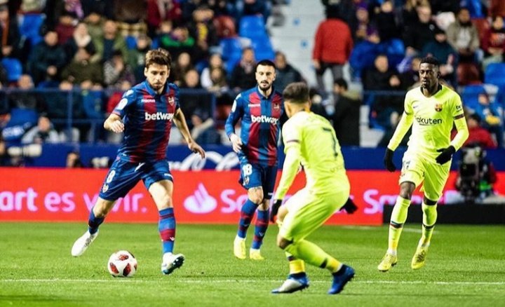 Levante unggul dua gol lebih dulu lewat aksi Erick Cabaco dan Borja Mayoral di babak pertama.Barca sempat memperkecil ketinggalan lewat eksekusi penalti Phillippe Coutinho.