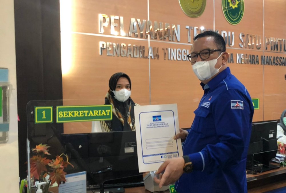 MAKASSAR, SULSELEKSPRES.COM – DPD Partai Demokrat Sulawesi selatan menyambangi kantor Pengadilan Tinggi Tata Usaha Negara (PTUN) kota Makassar, di Jalan Ap Pettarani, Jumat (12/11/2021).