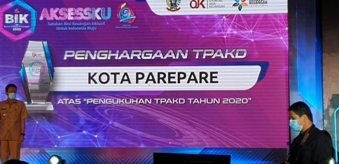 MAKASSAR, SULSELEKSPRES.COM – Wali Kota Parepare, HM Taufan Pawe menerima penghargaan sebagai salah satu Penggerak Literasi dan Inklusi Keuangan Daerah. Piagam penghargaan diserahkan di Hotel The Rinra, Kota Makassar, Senin, (26/10/2020).