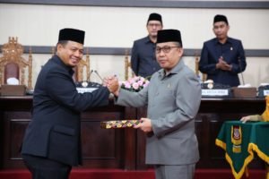 Selanjutnya dilakukan penyerahan naskah reses dari Ketua DPRD Kota Makassar Farouk M Beta ke Penjabat Wali Kota Makassar Iqbal Suhaeb disaksikan oleh seluruh anggota dewan yang hadir.