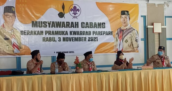 Istri Wali Kota Parepare terpilih secara aklamasi dalam Musyawarah Cabang (Muscab) Gerakan Pramuka yang digelar Kwarcab Pramuka Parepare, di Hotel Bukit Kenari, Rabu, (03/11/2021).