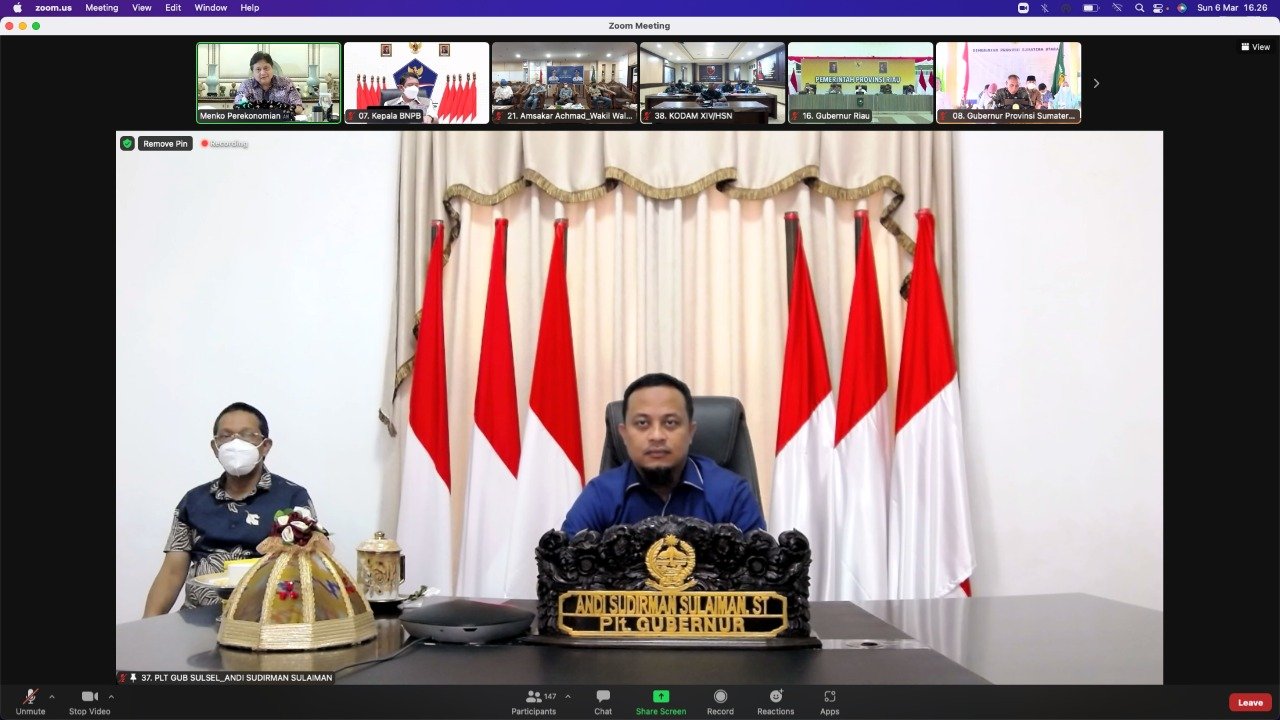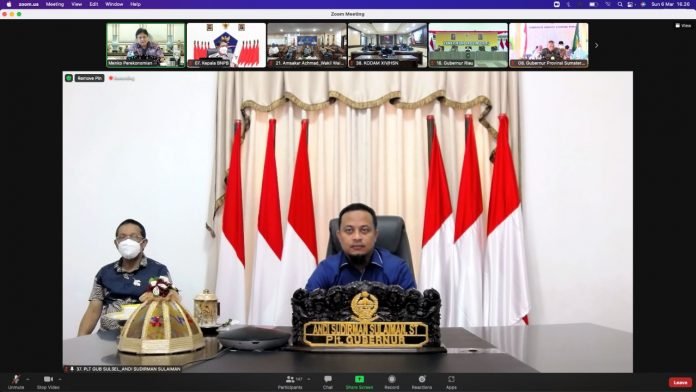 Pelaksana Tugas Gubernur Sulsel, Andi Sudirman Sulaiman hadir langsung mengikuti secara virtual.