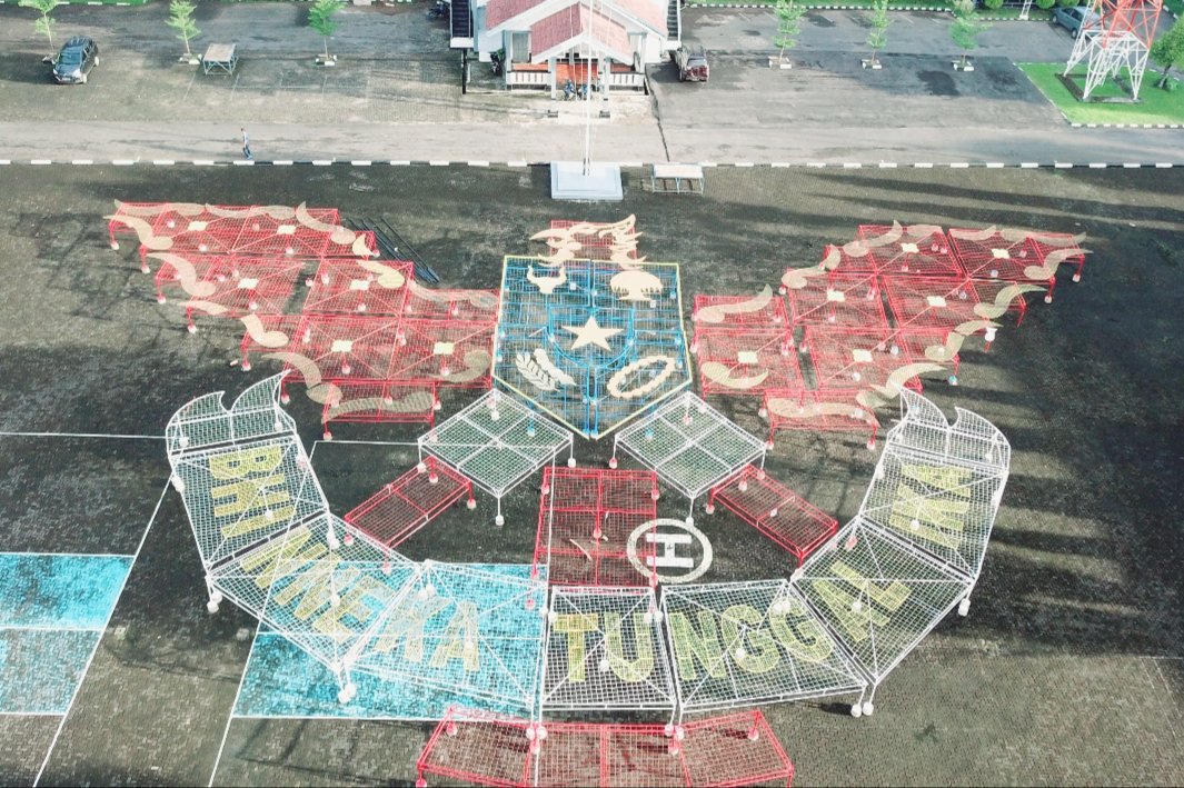 “Sekarang sudah kita gelar dalam formasi yang utuh modul tempat penanaman terumbu karang kebangsaan Garuda di Lautku, di lapangan apel Arafuru Mako Lantamal VI yang berbentuk burung Garuda yang nantinya akan mencengkram di dasar laut di perairan Pulau Kodingareng Keke,” ujar Kafasharkan Makassar.