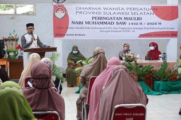 MAKASSAR, SULSELEKSPRES.COM – Dharma Wanita Persatuan (DWP) Provinsi Sulawesi Selatan (Sulsel) menggelar peringatan Maulid Nabi Muhammad SAW 1442H/2020 M, di Aula Kantor DWP Sulsel, Kamis (12/11/2020)