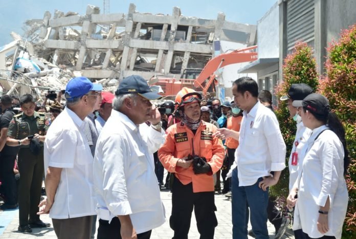 SULSELEKSPRES.COM – Presiden Joko Widodo melanjutkan peninjauan lokasi terdampak gempa dan tsunami di Palu ke lokasi berikutnya, yaitu Hotel Roa-Roa pada Rabu, (3/10/2018).
