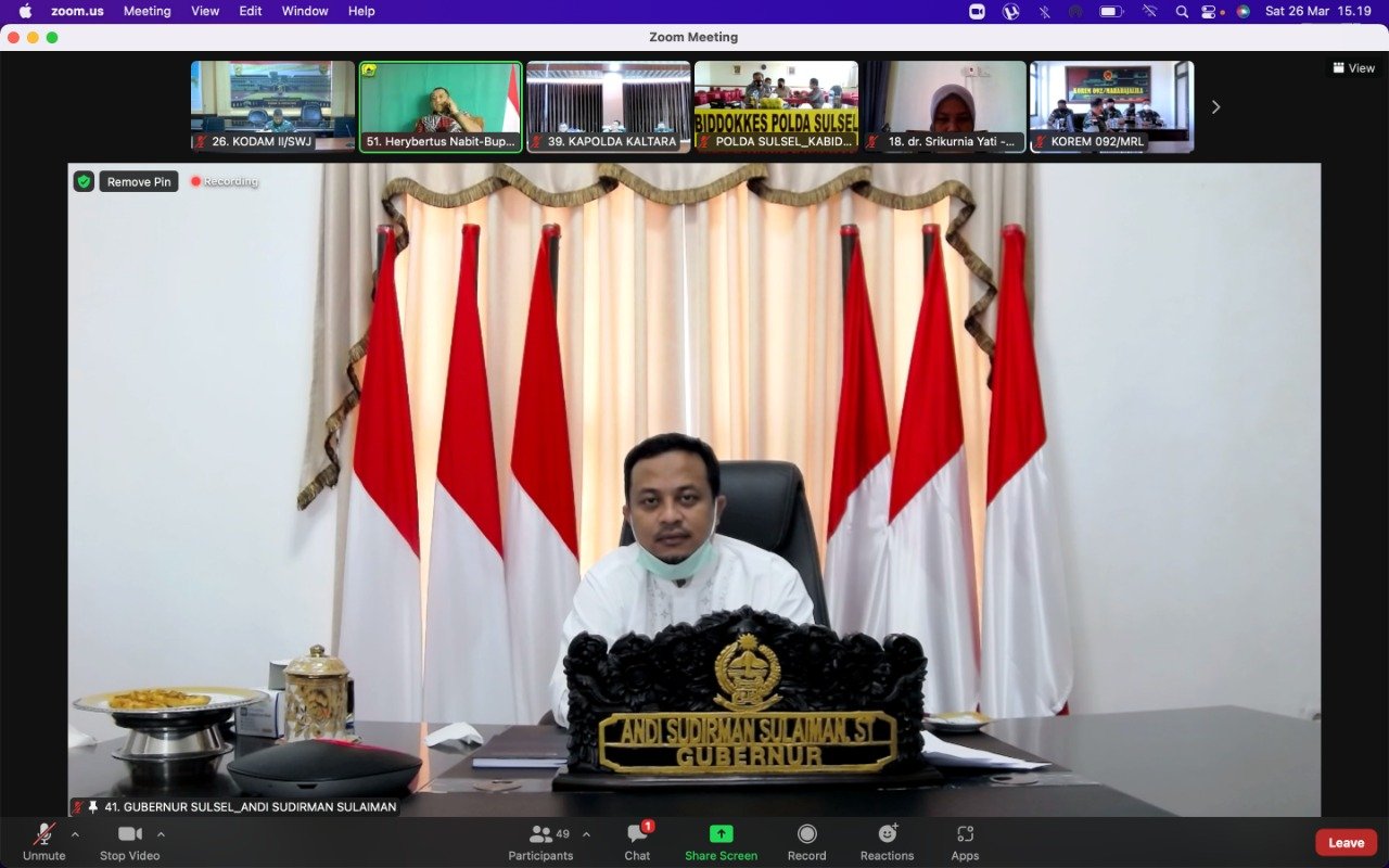MAKASSAR, SULSELEKSPRES.COM – Gubernur Sulawesi Selatan Andi Sudirman Sulaiman mengikuti Rapat Koordinasi (Rakor) Evaluasi Pemberlakuan Pembatasan Kegiatan Masyarakat (PPKM) Diluar Jawa-Bali, yang digelar secara virtual, Sabtu (26/3/2022).