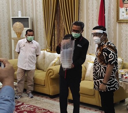 Dalam kesempatan tersebut Gubernur HM.Nurdin Abdullah membawa bantuan berupa Alat Pelindung Diri (APD) lengkap yang diserahkan kepada Bupati Bone.