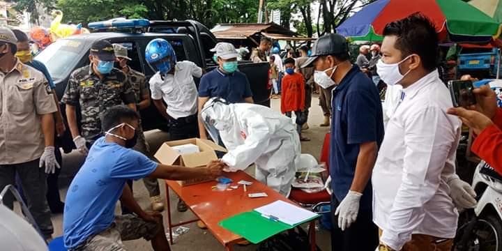 Puluhan pedagang dan pengunjung di pasar ini menjalani rapid test sebanyak 30 yang diperiksa dengan hasil 6 Reaktif.