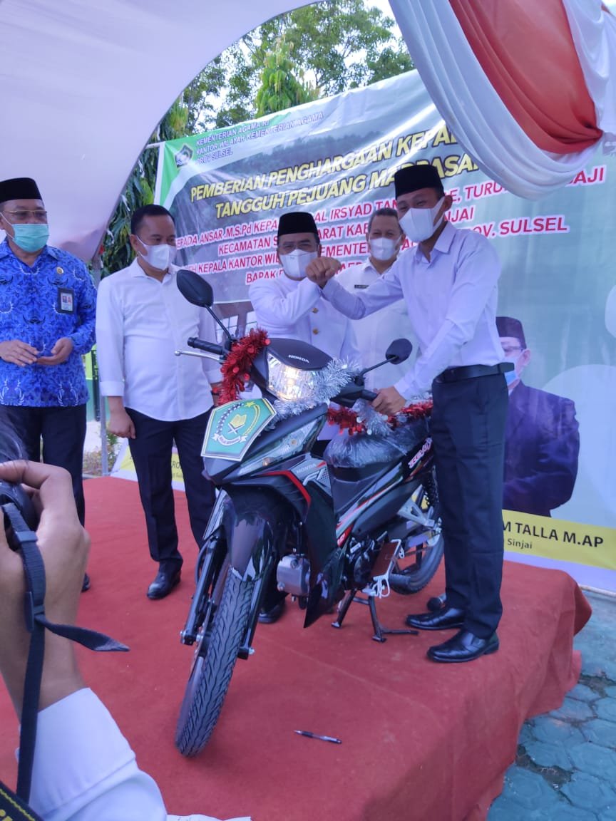 “Sebagai Kakanwil saya merasa bangga atas dedikasi dan pengabdian Ansar,” lanjut Khaeroni dalam sambutannya sebelum menyerahkan sepeda motor tersebut kepada Ansar di halaman Kantor Kemenag Sinjai, Rabu (17/2/2021).