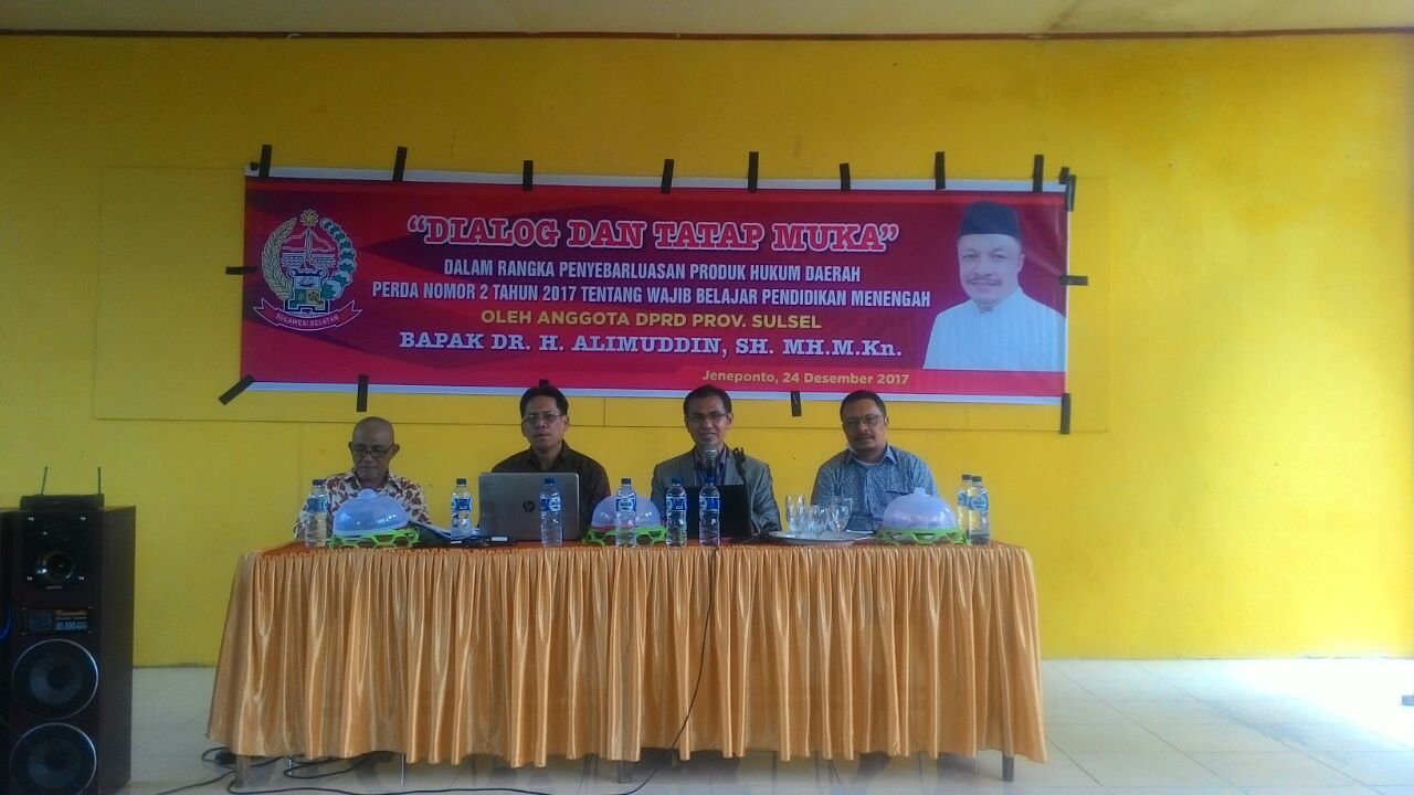 “Sosialisasi agar perda yang telah disepakati pemerintah provinsi dan DPRD Sulsel bisa dipahami dan diikuti,” kata H Alimuddin (24/12/2017).