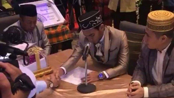 “Saya terima nikahnya Andi Isnadha Sikrian Zaenuddin binti Andi Zaenuddin dengan mahar 176 rial, sebuah rumah, dan seperangkat alat shalat dibayar tunai karena Allah SWT,” ucap Rasyid dalam ijab kabulnya.