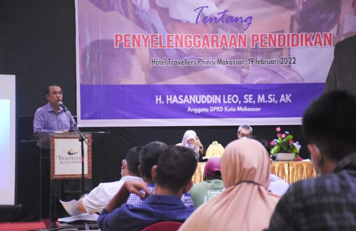 Sosialisasi Perda yang dilakukan Hasanuddin Leo terkait Perda Kota Makassar Nomor 1 tahun 2019 tentang Penyelenggaraan Pendidikan, di Hotel Travellers Phinisi Makassar, Jalan Lamadukelleng Buntu, Sabtu (19/2/2022).