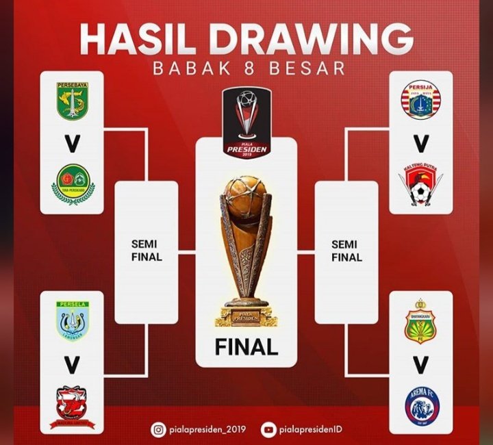 PSSI selaku operator telah menggelar drawing babak delapan besar. Pengundian dilakukan di Ruang Press Conference Stadion Gelora Bung Karno, Jakarta, Selasa (19/3).