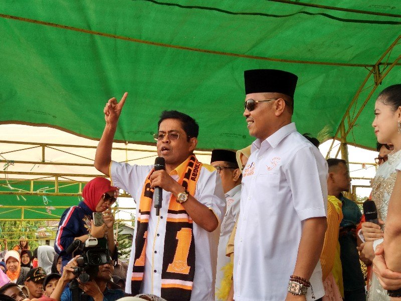 PINRANG, SULSELEKSPRES.COM – Pasangan Calon Bupati dan Wakil Bupati Pinrang nomor urut satu, Abdul Latif dan Usman Marham, melakukan kampanye di Lapangan Bau Massepe, Kelurahan Watang Suppa, Kecamatan Suppa, Kabupaten Pinrang, Senin (18/06/2018).