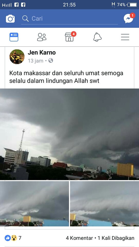 Foto-foto awan tsunami tersebut diunggah oleh warganet di facebook bertepatan dengan awal tahun baru 2019.