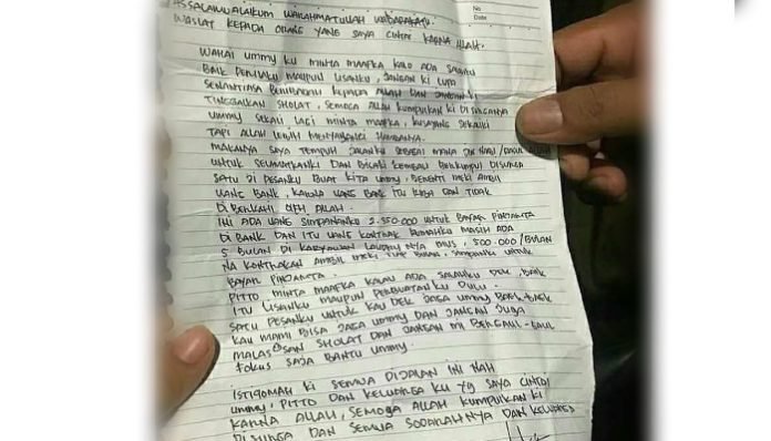 Dalam suratnya, pelaku meminta maaf kepada ibunya dan juga adiknya. Dia juga menitipkan beberapa pesan khusus kepada ibunya.