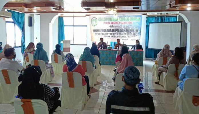PAREPARE, SULSELEKSPRES.COM – Ketua Komisi II DPRD Kota Parepare, Kaharuddin Kadir menyosialisasikan Peraturan Perundang-undangan (Perda) Nomor 9 Tahun 2012 tentang Penyelenggaraan Pelayanan Publik.