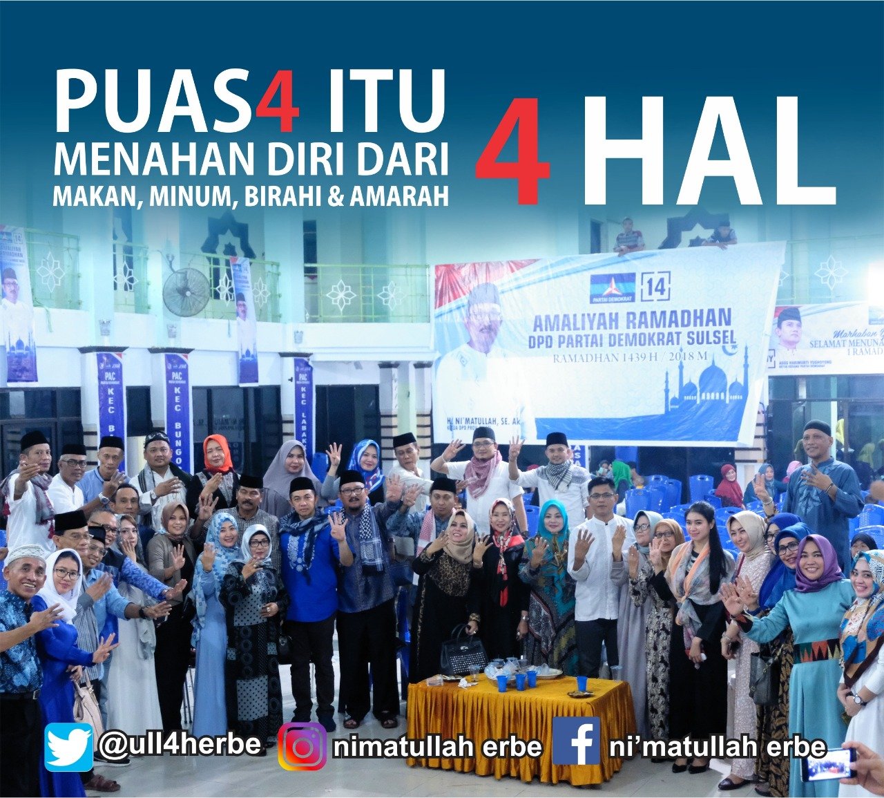 “Saya meminta untuk seluruh kader dan simpatisan partai demokrat solid dalam menghadapi Pilgub Sulsel, terutama jaga kualitas Iman dan Taqwa, dahulukan hubungan kekerabatan kita selama bulan ramadhan dan menjelang pilgub” imbuh Ni’matullah.
