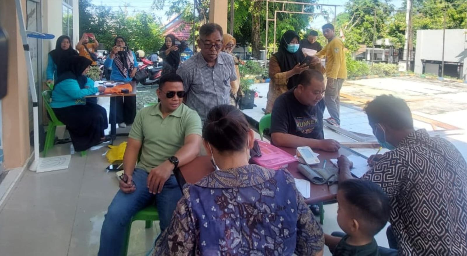 Para staff yang melakukan pemeriksaan kesehatan terlihat antusias dan dengan teratur menunggu giliran mendapat layanan kesehatan berupa pemeriksaan kesehatan menyeluruh.