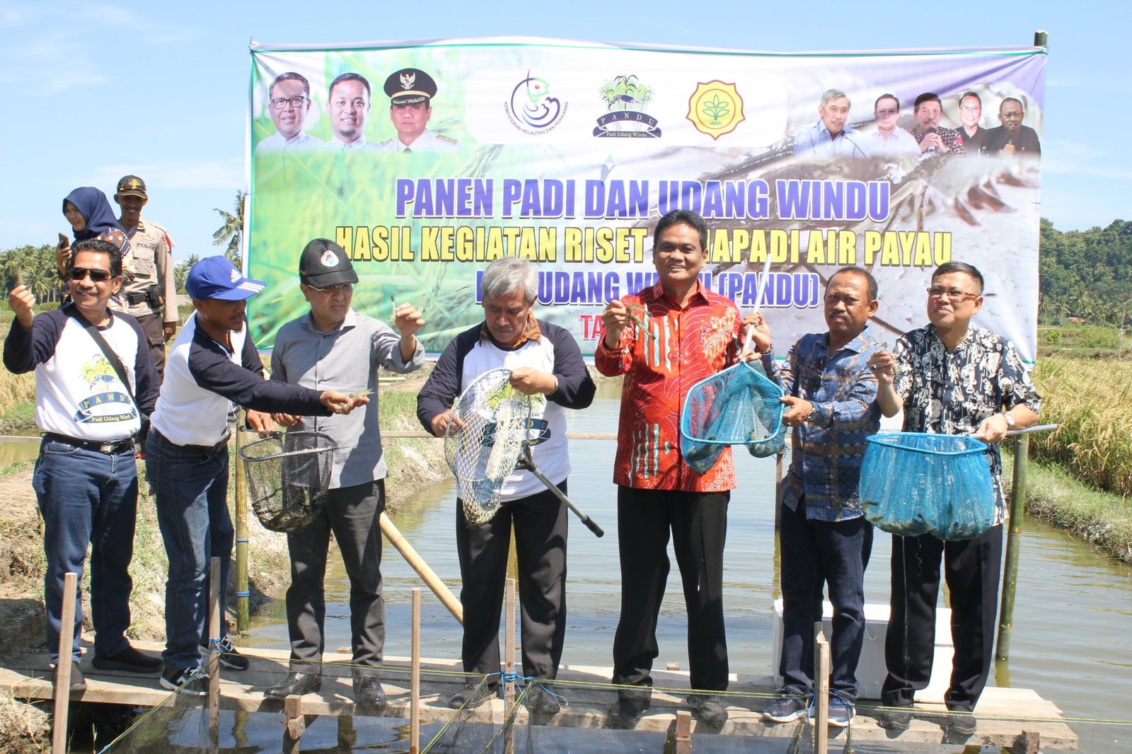 Panen yang dilakukan di lahan sekitar 1 hektar (30% untuk udang dan 70% untuk lahan padi). Lahan tersebut merupakan lahan persawahan milik kelompok masyarakat yang sudah ditinggalkan kurang lebih 10 tahun karena dianggap tidak produktif