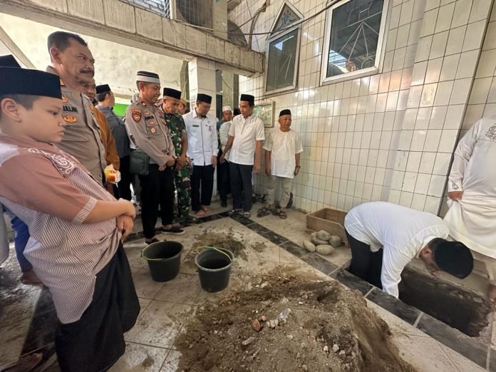 MAKASSAR, SULSELEKSPRES.COM – Ketua DPRD Makassar Rudianto Lallo menghadiri peletakan batu pertama renovasi Masjid Ihyatul Jamaah Lembo Makassar, Jumat,9/12/2022.