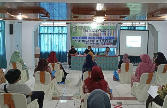 PAREPARE, SULSELEKSPRES.COM – Ketua Komisi I DPRD Kota Parepare Kaharuddin Kadir menggelar Sosialisasi Perda Nomor 15 Tahun tentang Peyelenggaraan dan Pengelolaan Perpustakaan di Hotel Satria Wisata, Sabtu (03/07/2021).