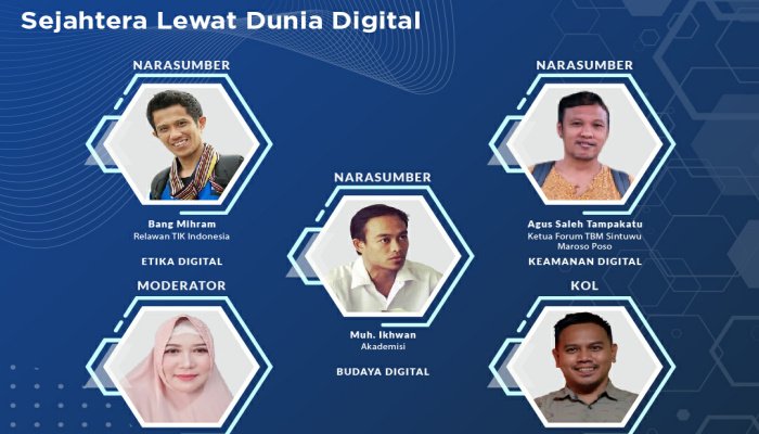 Program kali ini menghadirkan 1.062 peserta dan empat narasumber yang terdiri dari pendiri media digital Tana Poso, Gunawan Primasatya; relawan TIK Indonesia, Bang Mihram; akademisi, Muh. Ikhwan; dan Ketua Forum TBM Sintuwu Maroso Poso, Agus Saleh Tampakatu. Adapun yang bertindak sebagai moderator adalah Made Dewi Adnjani dari Japelidi Unissula. Rangkaian Program Literasi Digital “Indonesia Makin Cakap Digital” di Sulawesi menargetkan peserta sebanyak 57.550 orang.
