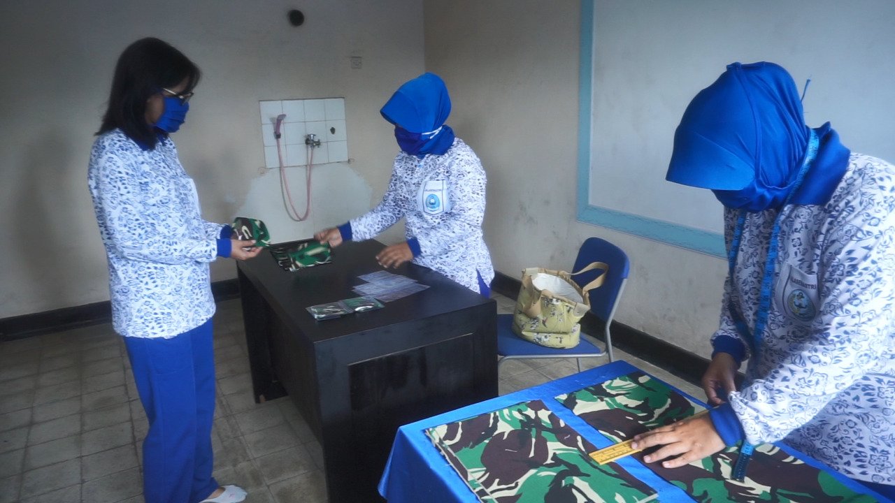 Dalam pembuatan masker tersebut lanjutnya, menggunakan beberapa bahan yang mudah dicari dan harga terjangkau seperti bahan kain untuk baju seragam kerja Jalasesnasti, kain doreng catton serta karet untuk pengikat.