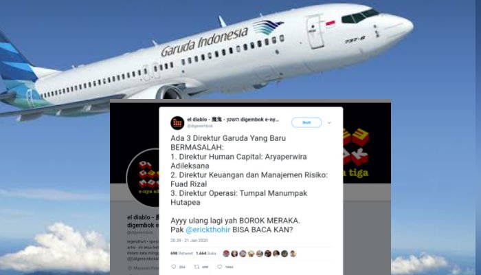 SULSELEKSPRES.COM – Akun Twitter anonim @digeeembok mengungkapkan kekecewaan atas jajaran direksi Garuda yang baru ditetapkan.