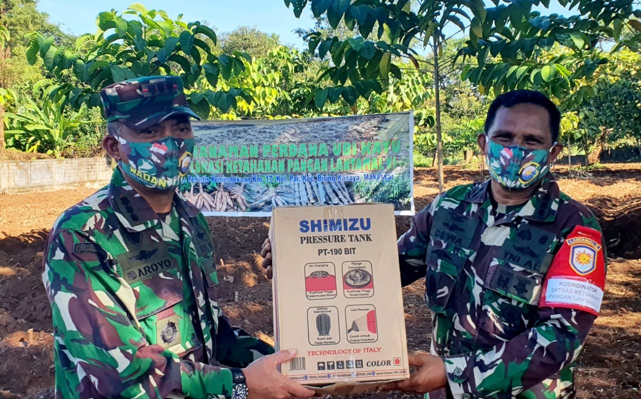 MAKASSAR, SULSELEKSPRES.COM – Pangkalan Utama TNI AL VI (Lantamal VI) Makassar mendukungĀ pompa air untuk perkebunan ketahanan pangan Covid-19 di Jl. Perintis Kemerdekaan Km.17 Kampung Batu Tambung Kelurahan Pai, Kecamatan Biringkanaya, Makassar.