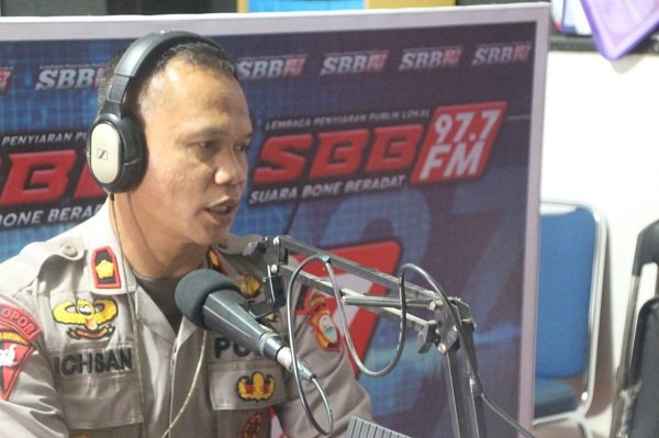 BONE,SULSELEKSPRES.COM – Komandan Batalyon (Danyon) C Pelopor Satbrimob Polda Kompol Nur Ichsan, S.Sos hasir memenuhi undangan dari pihak penyiaran adio Suara Bone Beradat (SBB) sebagai narasumber dalam program “Dialog Spesial Bersama Danyon C Pelopor Kompol Nur Ichsan”, Selasa, (23/02/2021).