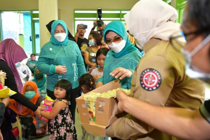 MAKASSAR, SULSELEKSPRES COM — Ketua Tim Penggerak Pemberdayaan Kesejahteraan Keluarga (PKK) Provinsi Sulawesi Selatan (Sulsel), Lies F Nurdin, mengunjungi dan membagikan bantuan bagi ratusan korban musibah banjir di tiga titik terparah di kota Makassar, yakni Kelurahan Manggala Antang dan Kelurahan Pacerakkang, Daya.