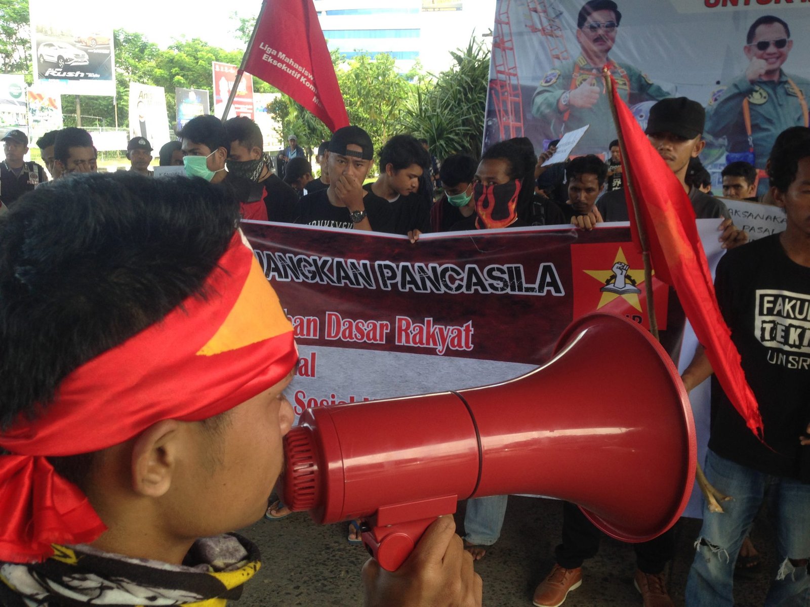 “Hentikan kebijakan ekonomi neoliberal yang pro terhadap pasar, turunkan harga kebutuhan dasar rakyat, dan bangun industri nasional yang berlandaskan pada pasal 33 UUD 1945,” ujar Jenderal Lapangan, Rusman Tuharea.