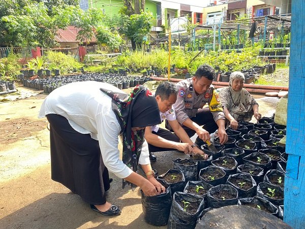 MAKASSAR,SULSELEKSPRES.COM – Lurah Buntusu, Tamalanrea, Akmal bersama Babinkantibmas dan penyuluh serta ketua KWT melakukan gerakan terus menanaman 1 juta Polybag.