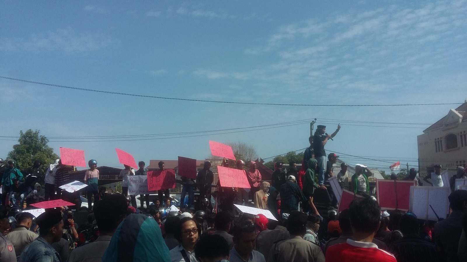 Suasana semakin memanas ketika mobil truk yang digunakan sebagai pusat orasi pendukung Gubernur dialihkan menghadap mobil yang digunakan oleh massa Pro Hak Angket.