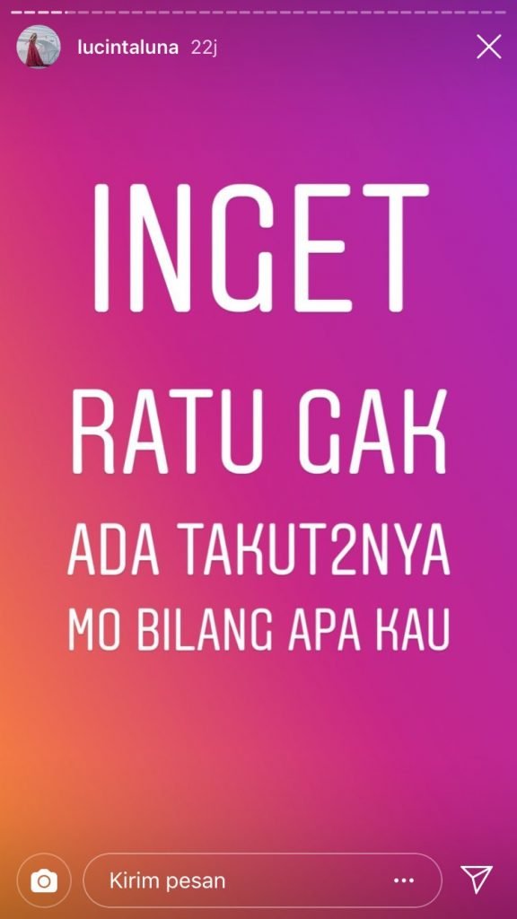 “Awas ketemu, liat aja dalam waktu dekat ini, gue tantang ketemu untuk klarifikasi,” tulis Lucinta Luna.
