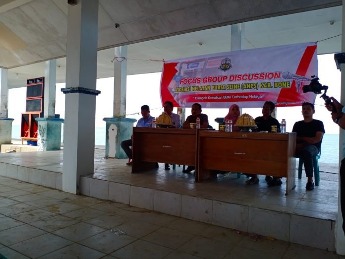 BONE,SULSELEKSPRES.COM – Nelayan Pa’Gai Kabupaten Bone yang tergabung dalam Asosiasi Nelayan Purse Seine (ANPS) menggelar Forum Group Discussion (FGD), membahas dampak kenaikan harga BBM terhadap nelayan, berlangsung di Area PPI Lonrae, Kelurahan Lonrae, Kecamatan Tanete Riattang Timur, Minggu (4/9/2022).
