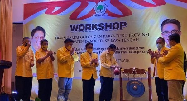 “Kehadiran saya, mewakili Ketua Umum sesuai dengan surat mandapat yang saya terima, dengan ini saya membuka Workshop dan Rakornis pemenangan pemilu Jawa tengah”, kata Nurdin Halid saat membuka acara dan disambut riuh tepuk tangan.